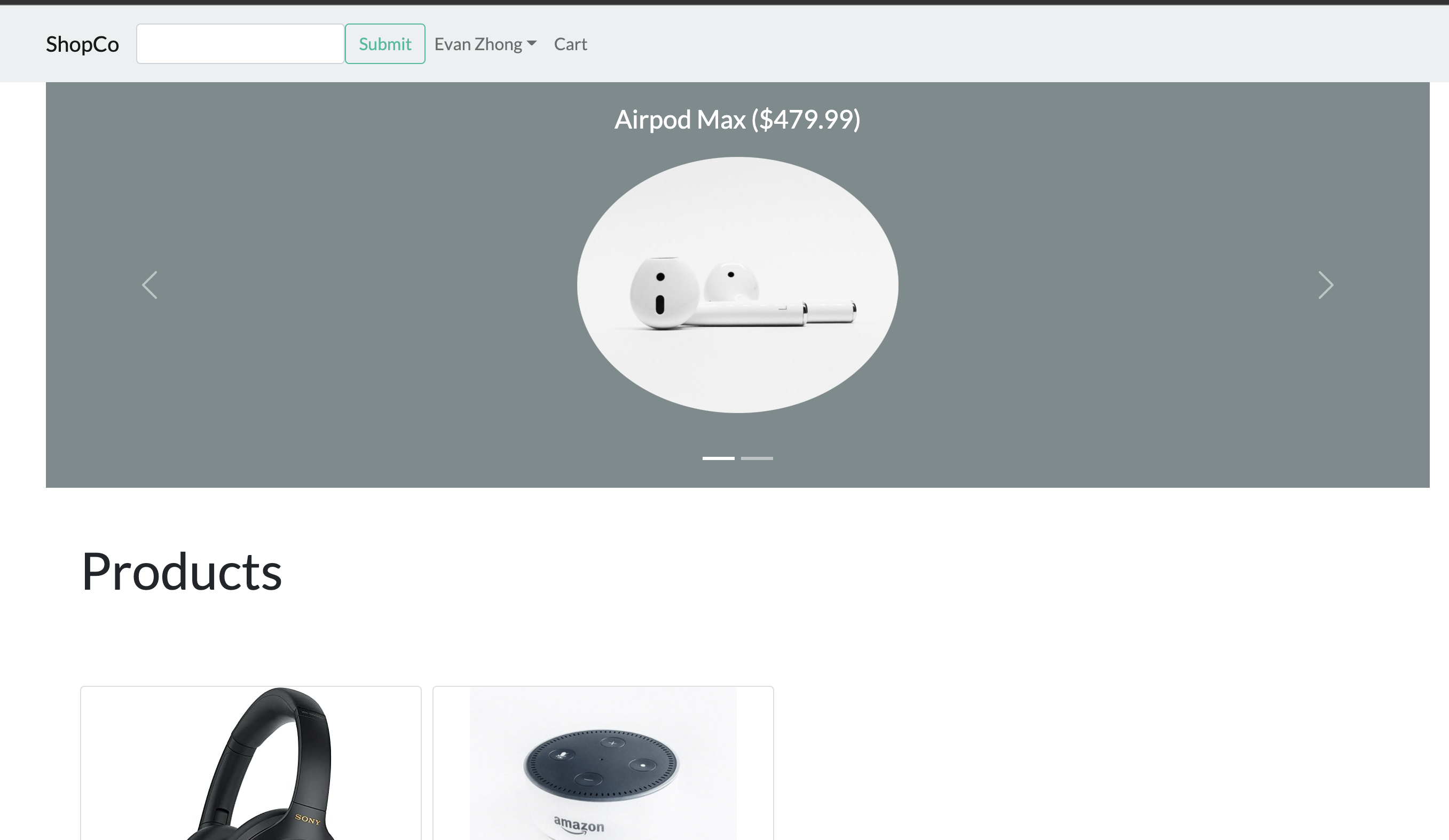 pagination and carousels to help sort the products by ratings. I also granted administrators the power to manage products, users, and orders.