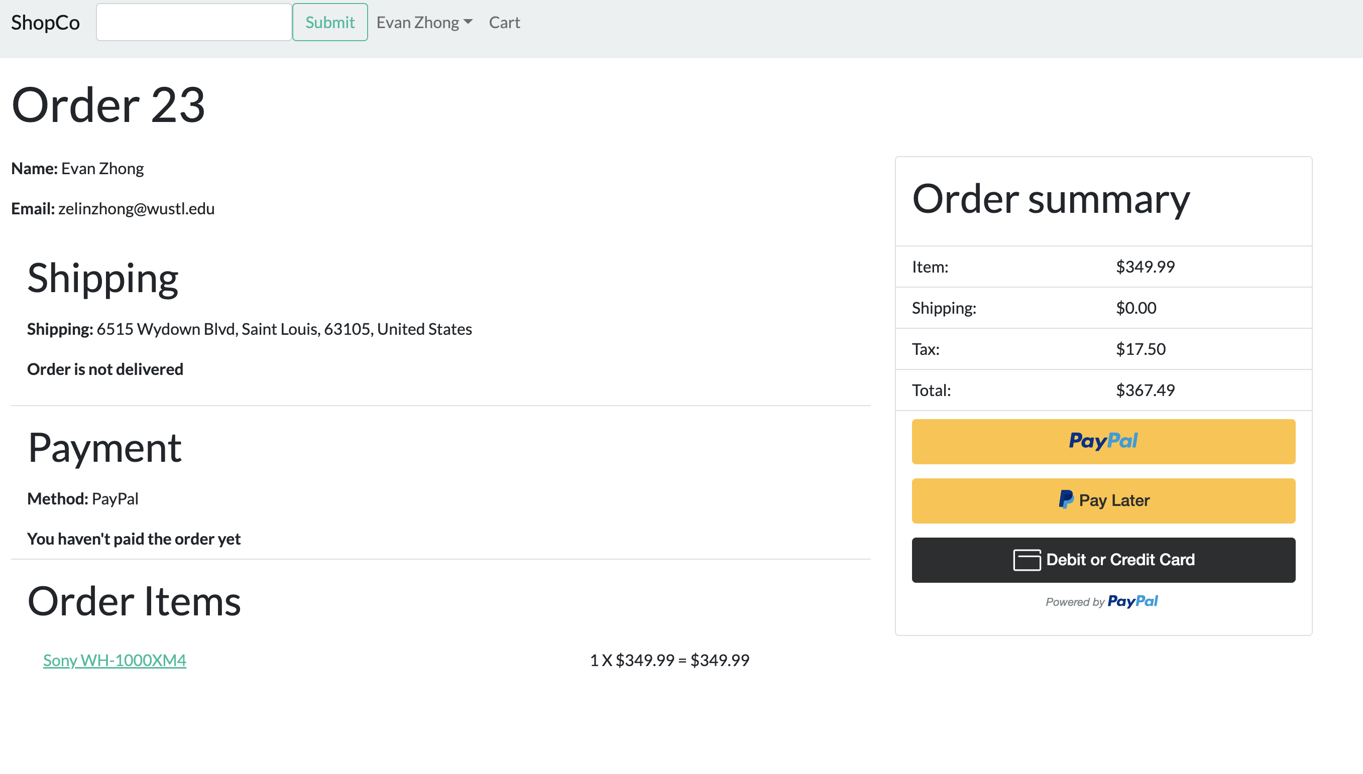 and shipping address information. I also used the PayPal API to build the checkout process.
